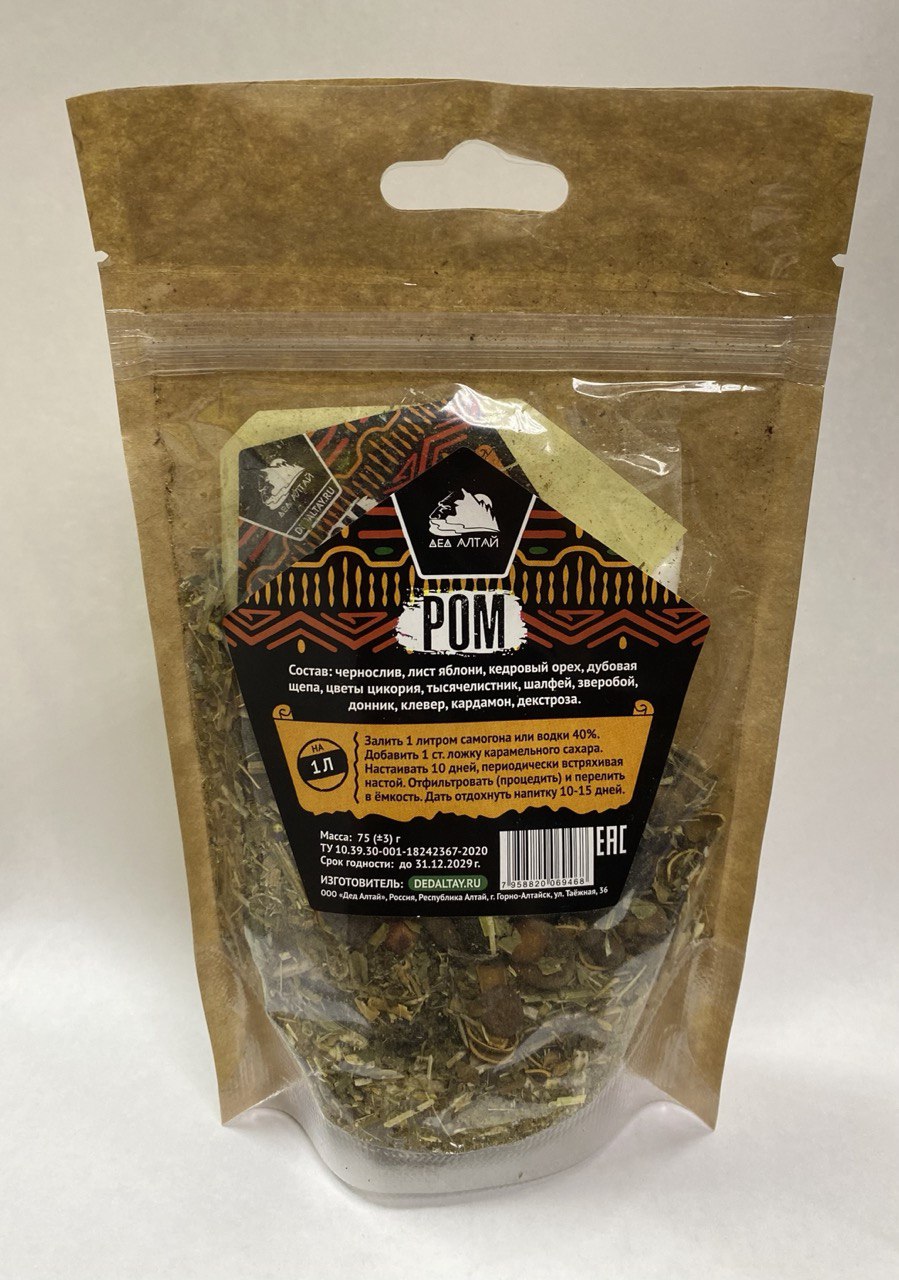 Набор для приготовления настойки "Ром" от "Дед Алтай" - это ваш ключ к созданию уникальных и ароматных напитков прямо у себя дома. В состав набора входят только натуральные ингредиенты, собранные в экологически чистом Горном Алтае. Чернослив, яблоневый цвет, кедровый орех, дубовая щепа и другие травы создадут неповторимый вкус и аромат вашей настойки. В комплекте с набором трав и специй находится фирменная наклейка для бутылки с готовым напитком и декстроза. С этим набором вы сможете легко приготовить настойку, которая станет настоящим украшением вашего стола и порадует вас и ваших гостей. Набор станет прекрасным подарком для друга, папы или мужа на Новый год, день рождения или 23 февраля. Подойдет как для начинающих, так и для опытных мастеров, желающих приготовить настойку для самогона виски своими руками. Следуя инструкции на упаковке, вы сможете создать настойку, которая станет настоящим украшением вашего стола и удивит ваших гостей своим вкусом и ароматом.
