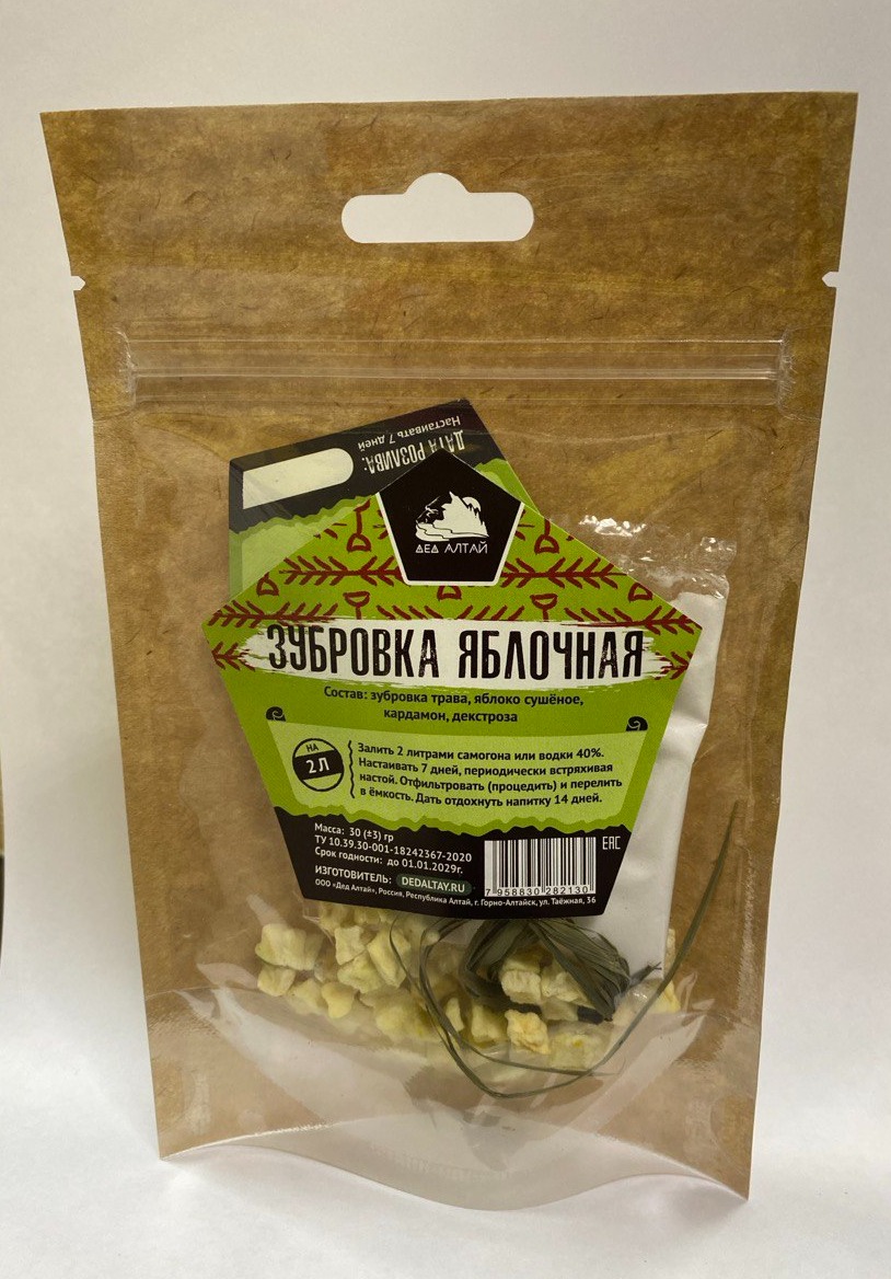 Состав: Зубровка трава, яблоко сушеное, кардамон, декстроза.